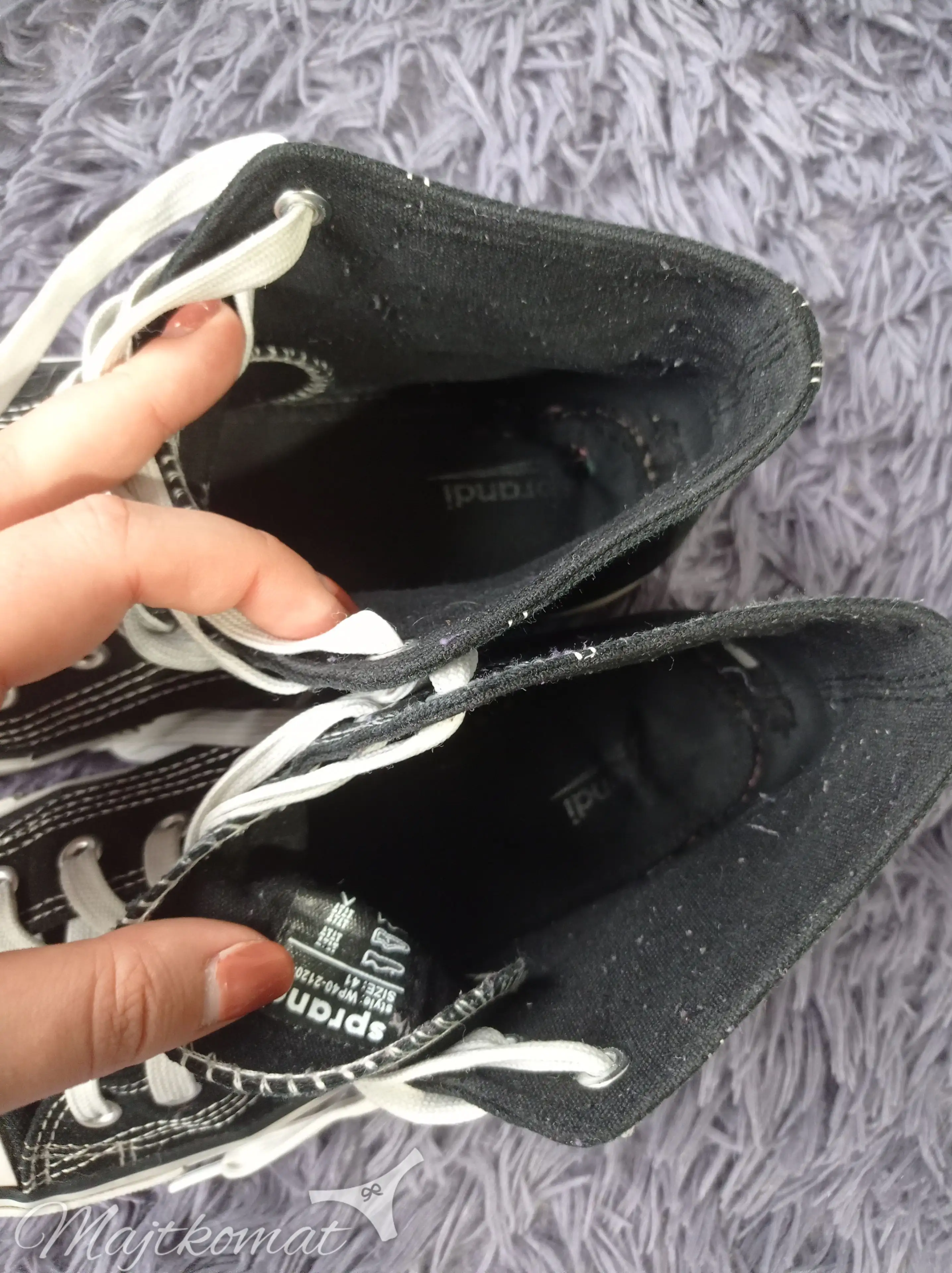 Jeśli marzą ci się przepocone, znoszone trampeczki młodej dupki, to trafiłeś idealnie :) Przechodziłam w nich 3 miesiące, tak, byś miał pewność, że ich aromat zapewni ci najlepsze możliwe doznania :* Kup, bo ktoś cię wyprzedzi i nie zdążysz się do nich spuścić, tak jak tego pragniesz 🤤 Oczywiście korzystałam z nich także na boso :)