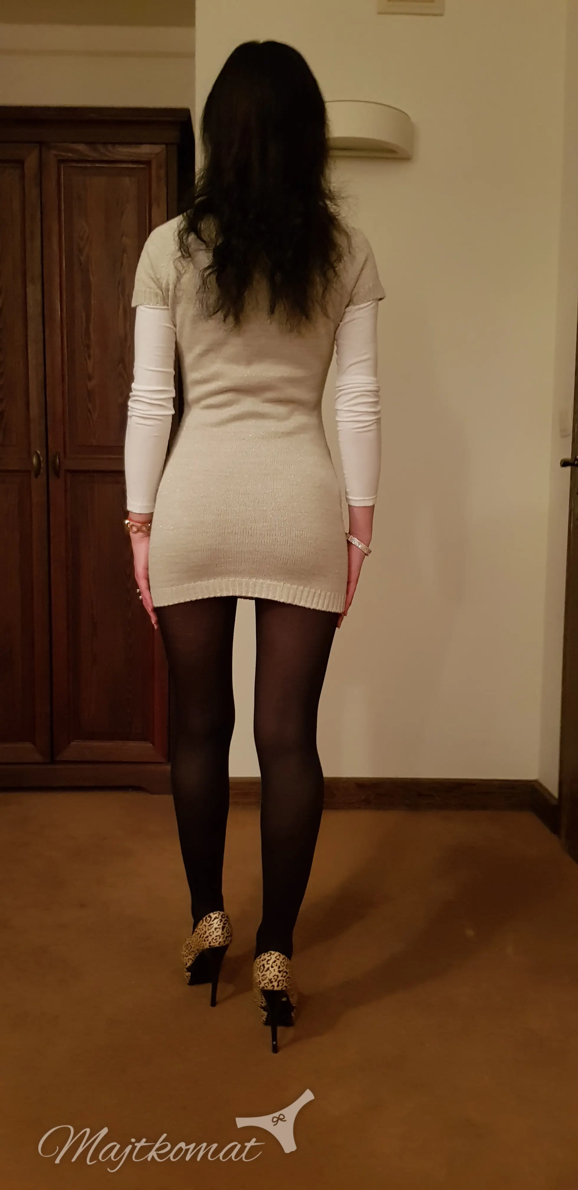 Sissy, bankomat, stópkarz, nylony, fetysz - cieniutkie beżowe rajstopy Królowej prosto z sądu.